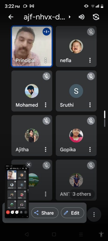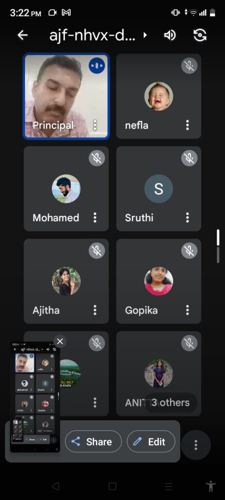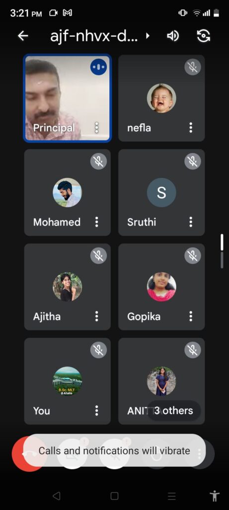 Ahalia School of Paramedical Sciences conducted an alumni meeting on 01/08/2024 via Google Meet. The session, attended by 25 students, featured discussions led by the Principal and alumni. Participants shared ideas and finalized the date for the upcoming convocation. The event fostered a strong connection between current students and alumni, emphasizing the importance of continued collaboration and support.