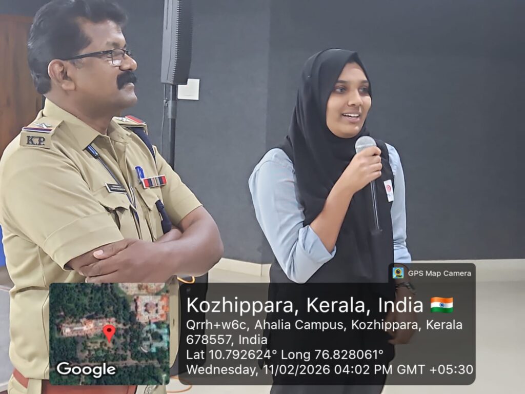 The session was handled by Mr. Arumughan V,Assistant Sub-Inspector of Police,Janamythri and CPG Asst. District Nodal Officer, Palakkad. He delivered an informative and interactive talk explaining what constitutes ragging, the punishable offences under law, and the responsibilities of students in preventing such practices. Real-life examples were shared to help students understand the long-term impact of ragging on victims as well as offenders. The session also encouraged students to report incidents without fear and highlighted available support systems.
