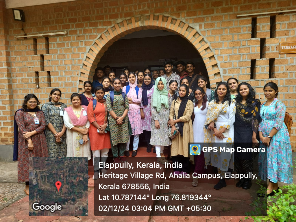 Paramedical Sciences embarked on an inspiring campus visit to the prestigious Ahalia Health, Heritage, and Knowledge Village. Accompanied by their leading faculty members Mrs. Sruthi, Ms. Anjana, and Ms. Milka Sherin, the students had the opportunity to explore the extensive facilities and gain valuable exposure to the practical aspects of healthcare education. The visit was designed to familiarize the students with the advanced infrastructure, including cutting-edge laboratories and healthcare units, and to introduce them to the harmonious blend of traditional heritage and modern knowledge that the campus embodies. The faculty provided insightful guidance throughout the tour, ensuring the students understood the significance of integrating theoretical learning with hands-on experiences. This visit not only deepened their understanding of medical laboratory technology but also motivated them to strive for excellence in their studies, paving the way for a promising future in the healthcare sector.