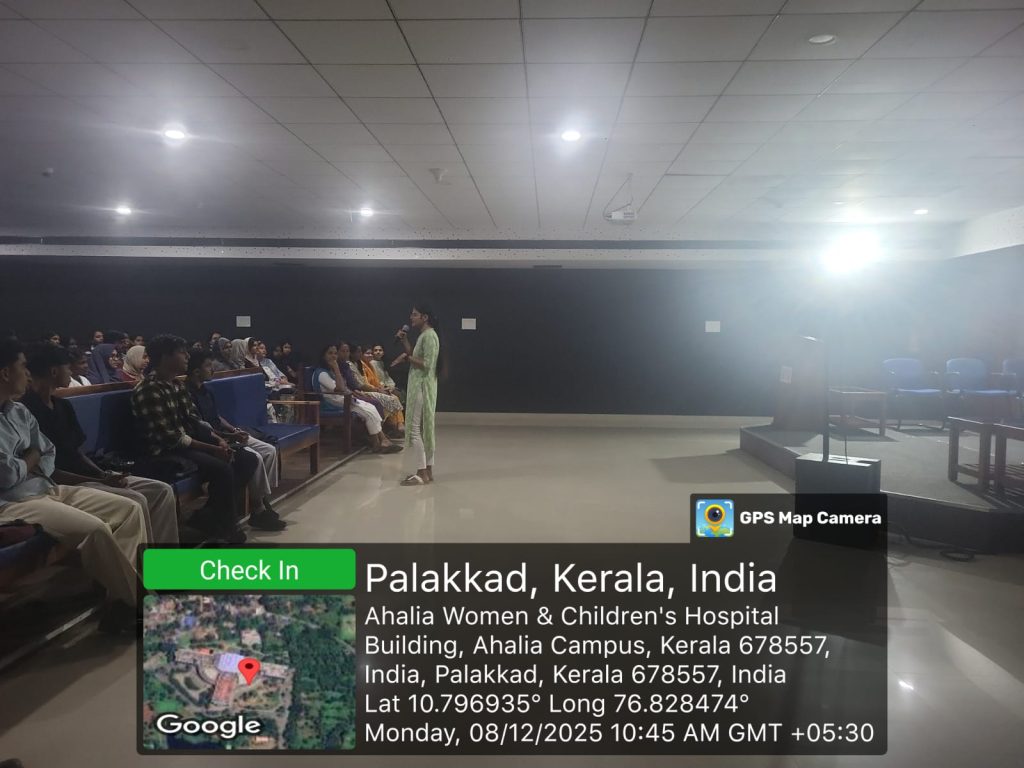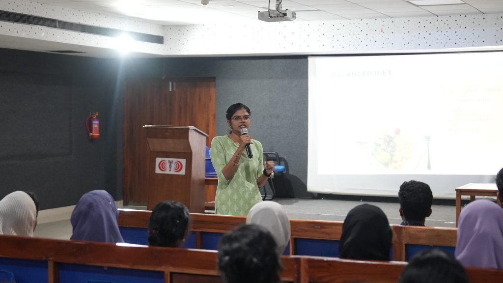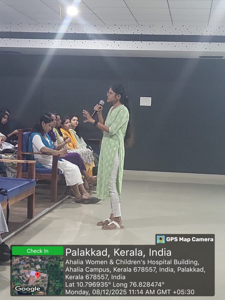 The Department of Nutrition & Diabetes Education, Ahalia Diabetes Hospital, conducted an informative session on the Importance of Balanced Diet on 8 December 2025 at 10:30 AM at the Ahalia Diabetes Hospital Auditorium. The session was led by Ms. Sona Saju, Dietitian, who explained the significance of maintaining a balanced diet to promote overall health, enhance immunity, prevent nutritional deficiencies, and support healthy lifestyle practices.