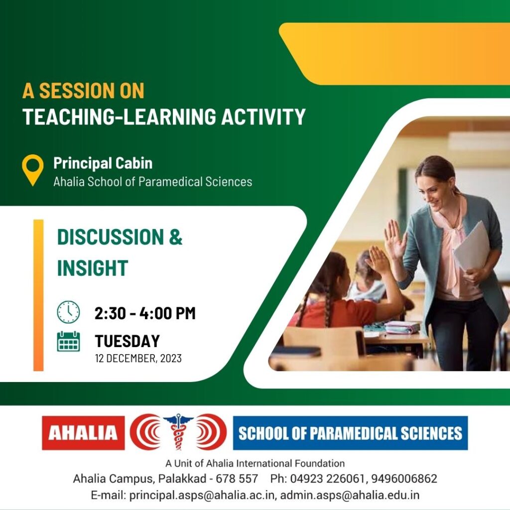 Internal Session for teaching learning activities was organised by Ahalia School of Paramedical Sciences on Dates 12/12/2012,13/12/2023,14/12/2023, 18/12/2023, 19/12/2023 from 3:15 – 4:00 PM